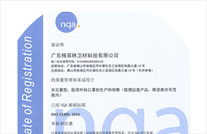 2020年8月, 医用外科口罩产品通过ISO 13485:2016 非灭菌型的医用外科口罩的生产和销售质量管理体系认证